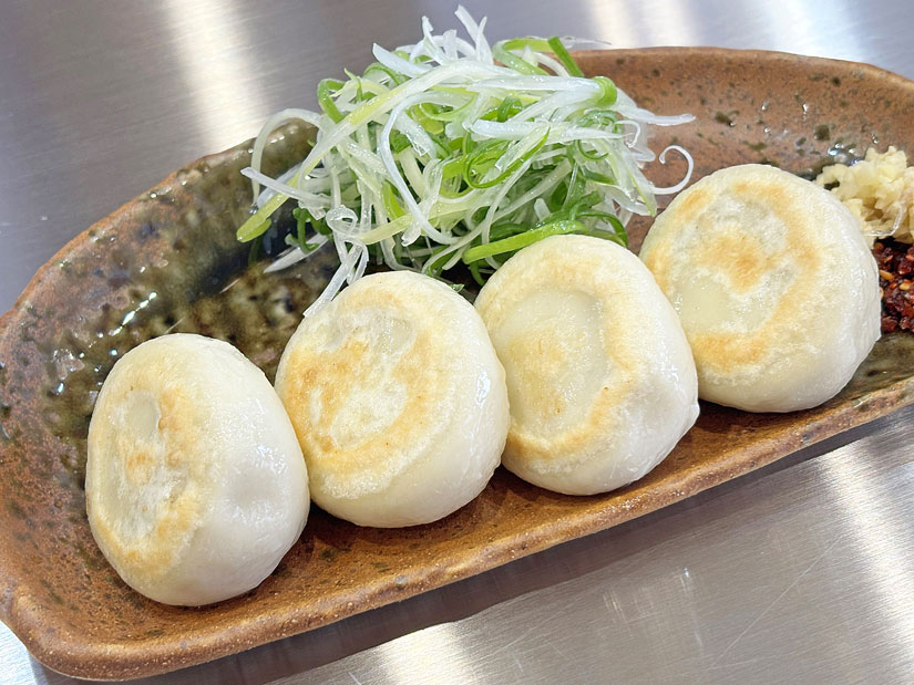 サイドメニューの「餃子」(500円)も見逃せません。店主が若い頃に長野市で出合った忘れられない味を再現したという逸品で、小籠包のように肉汁があふれ出すジューシーさが魅力。冷えたネギとともに熱々を頬張るのがおすすめです。