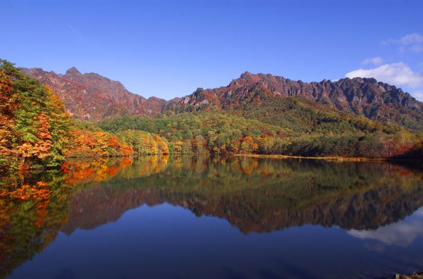 長野県長野市戸隠にある「鏡池(かがみいけ)」は、その名の通り、戸隠連峰の雄大な山々を鏡のように映し出す静寂の池です。春の新緑、夏の涼風、秋の紅葉、冬の雪景色と、四季を通じて異なる表情を見せてくれます。なかでも紅葉シーズン … 続きを読む 【長野県・紅葉2025】戸隠連峰を映す絶景!静寂の水面に紅葉が輝く「戸隠鏡池」@長野市