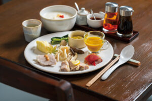 人気の創作コースには、きのことそうめんかぼちゃ、じゃがいもと豆腐のオードブルなど、飯山近郊でその日に採れた野菜を使った料理が並びます。「みゆきポークのもろみ味噌漬けのカツレツ」は、肉をもろみ味噌に3日間漬けて熟成させる手間暇を惜しまない一品。化学調味料は不使用。素材との相性を見ながら10種類の塩をブレンドするなど、ソースやドレッシング、さらにデザートまで、すべてが手作り。「お野菜たっぷりで身体の調子を整えてくれます。効能豊かな野沢温泉の外湯めぐりとともにお楽しみください」。