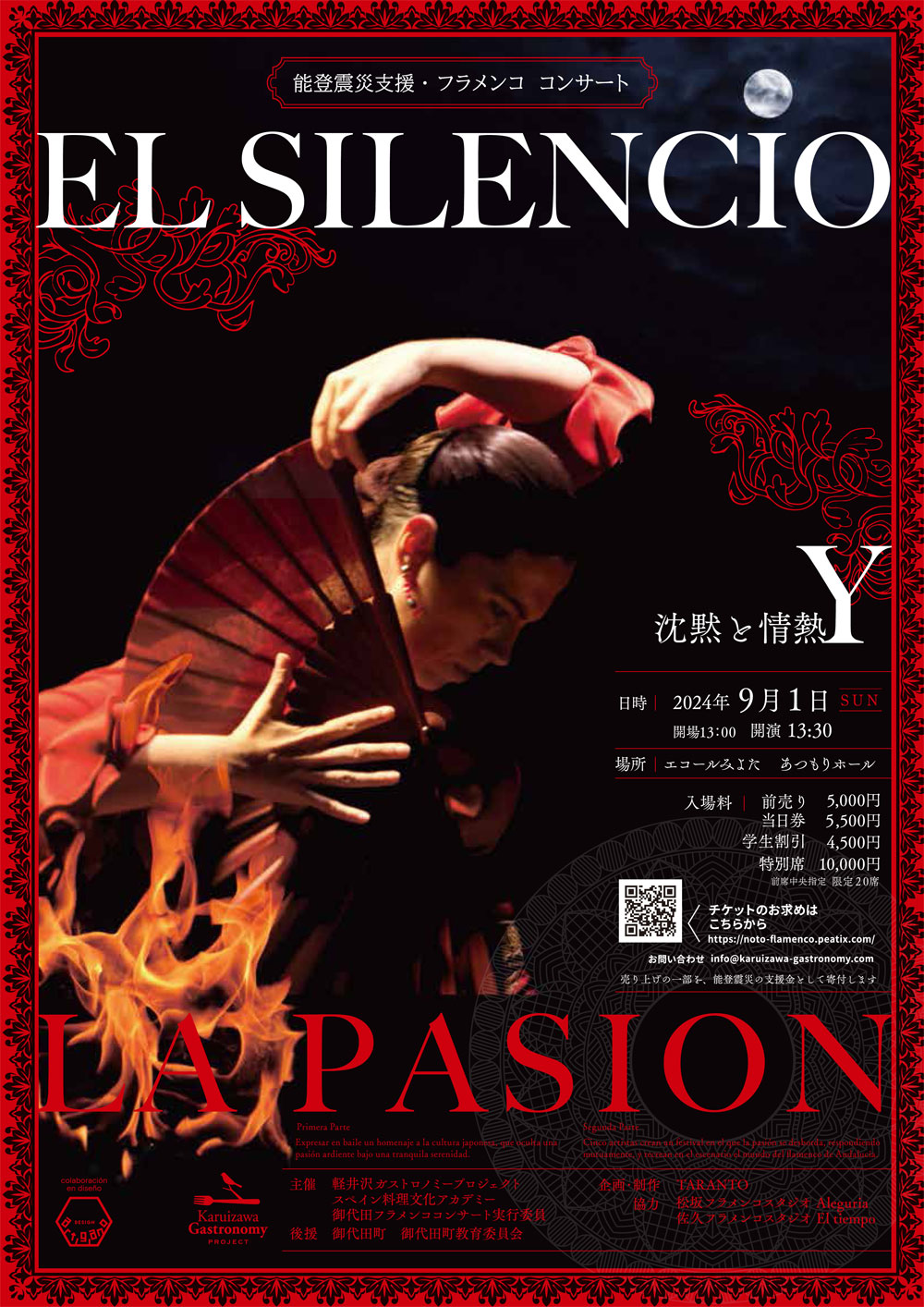 長野県・御代田町で、能登震災支援フラメンココンサート『El Silencio y la Pasion 沈黙と情熱』が、2024年9月1日(日)に開催。