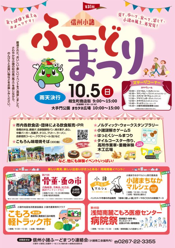 『第31回信州小諸ふーどまつり』小諸の秋を彩る食の祭典。小諸駅一帯でイベント開催!骨董・蚤の市/農産物販売の軽トラック市/病院祭も同時開催。