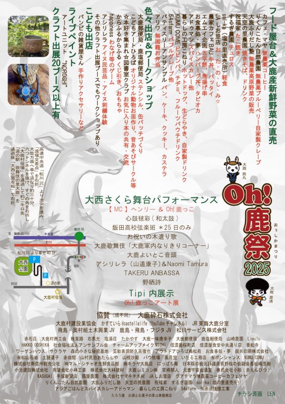 『Oh!鹿祭2025(オー!しかまつり)』紅葉シーズンの「大西公園」でクラフト・フード・ワークショップを満喫!ステージではアーティストによるライブも。