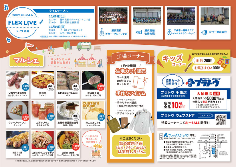 『フレックスジャパン秋の大感謝まつり2025』倉庫開放の大特価&最大62%OFF!地元グルメとハンドメイドマルシェも。