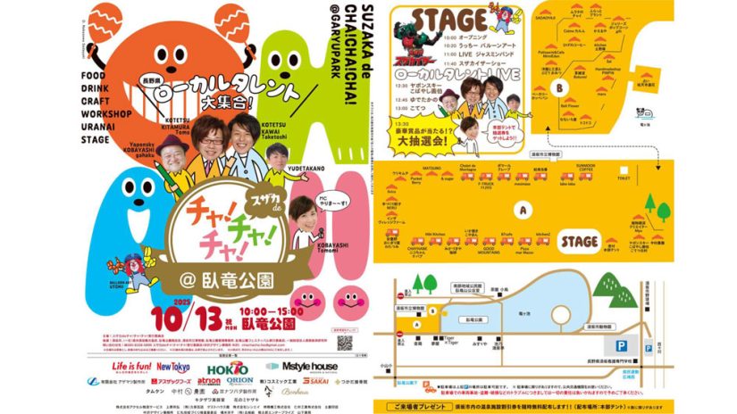 『SUZAKA de CHA!CHA!CHA!』。ヤポンスキーこばやし画伯、こてつも登場!「臥竜公園」でグルメと笑いの一日♪グルメ&フードなど約44ブースが集結。