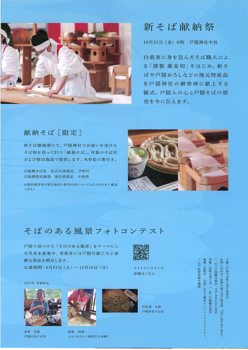 そのほか、「戸隠・そばのある風景写真コンテスト」なども行われます。詳細は、HPをチェック!