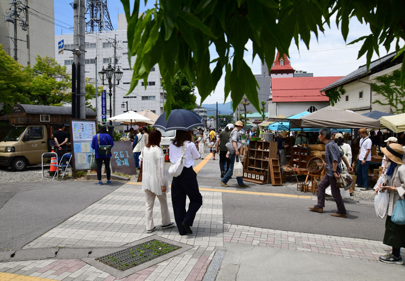 『261(にーろく市)』は、「素敵なモノや人との出会い、そして、上田の路地の町歩きや新しい発見を楽しんでもらいたい」と、2020年12月にスタート。3カ月に一度、3の倍数月の最初の土・日曜に、「26bldg.(ニィロクビルヂング)」をメイン会場に、その周辺(松尾町~柳町)の空き家や空きスペースを活用して開かれています。