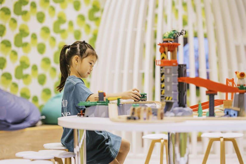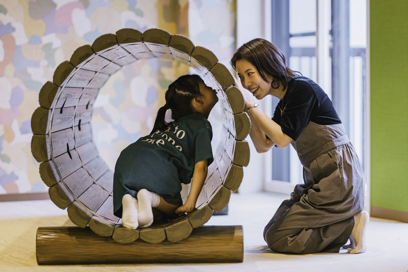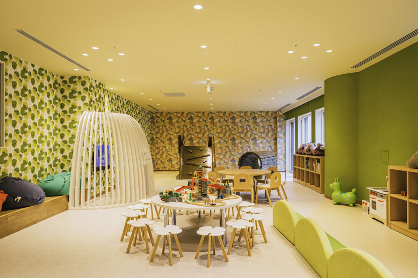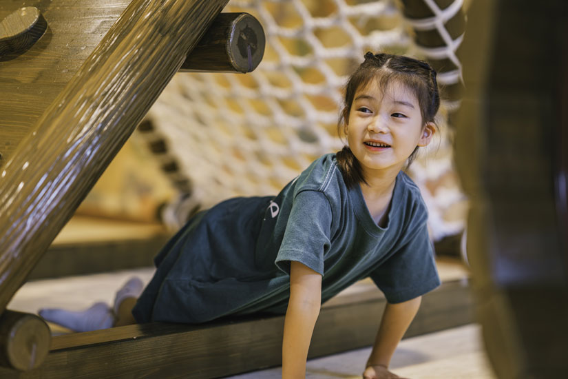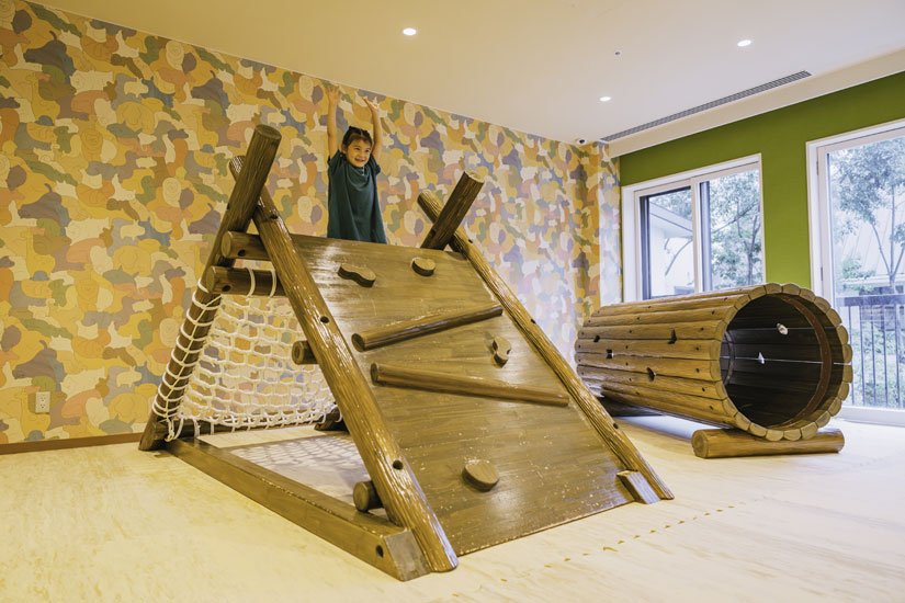 子育て世帯であれば、思わず感嘆の声が漏れてしまいそうなほどキュートなキッズスペースも、客室と同じくウッドを基調としたぬくもりのある空間。設置された遊具やおもちゃもなるべく木製にこだわり、安心で安全な遊び場となっています。