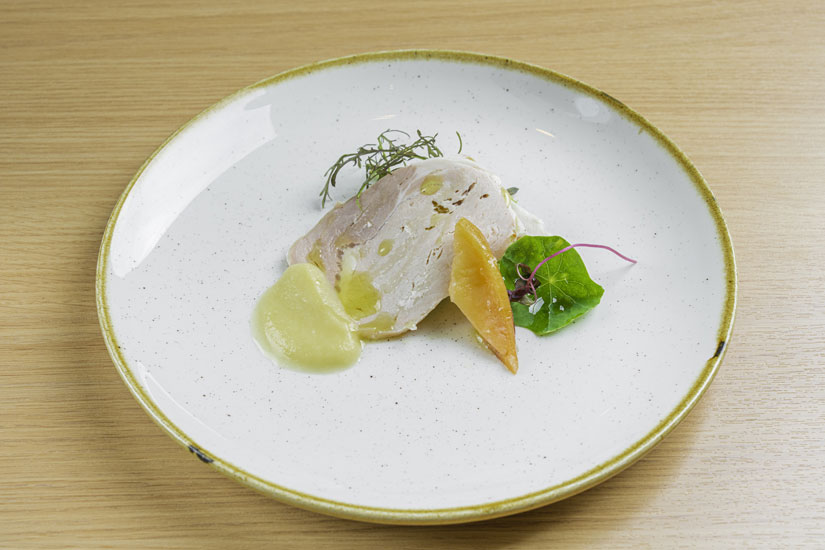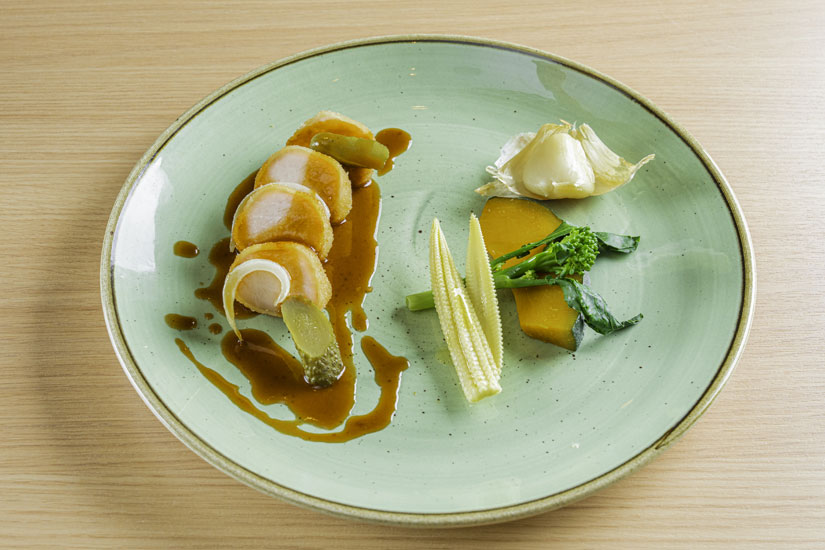 ディナーでは、コースディナー(11,000円、消費税・サービス料込み)を中心に、前菜からデザートまで季節ごとに構成を変えながら、なるべく信州産の素材にこだわって土地の香りを感じる品々を提供。料理は、その美しさもさることながら、一皿の中で野菜、肉、ソースが見事にそれぞれの良さを引き立て合い、素材の魅力が何層にも重なるので、見た目以上の奥行きと満足感が感じられます。