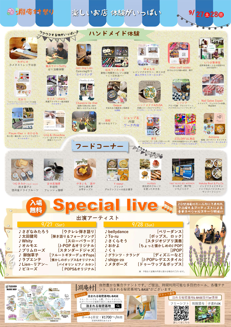 長野県松本市にある「淵庵村(ふちあんむら)」で、『第12回ふちあん村まつり』が、2025年9月27日(土)・28日(日)に開催。