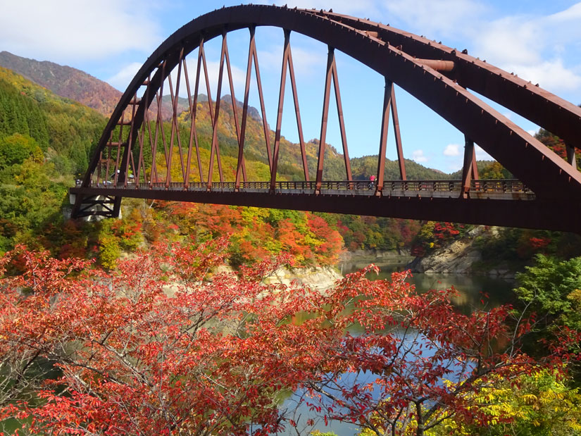 松川渓谷の玄関口に位置するシンボル的な存在の深い渓谷に架かる赤い橋