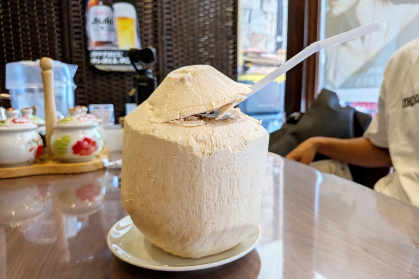 「配信するなら、写真映えするメニューがいいなぁ!コレ、なかなかレアじゃない?」とオーダーしたのは「生ココナッツ」(600円)。