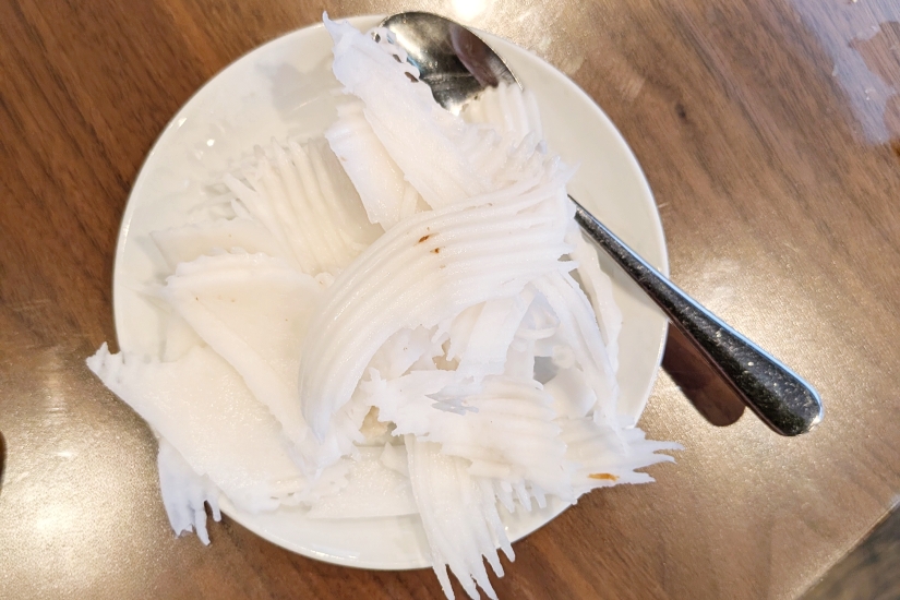 飲み終わったココナッツの実は、サービスで可食部分を削り取って提供してくれるので、ぜひお願いしてみて♪