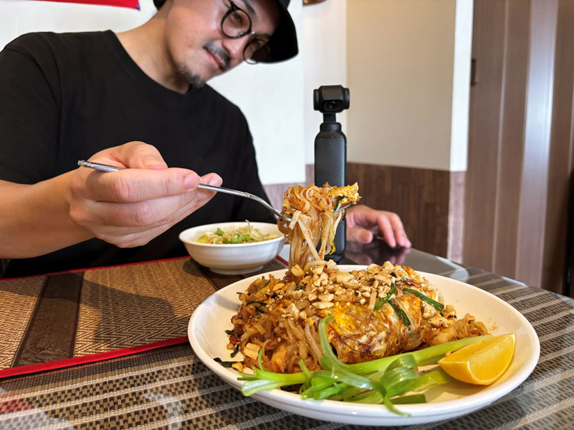 続いて「パッタイ」(900円)が登場!薄焼き卵に巻かれたその姿、食欲をそそります!盛り付けも豪快で、こちらもボリューム満点ですね!