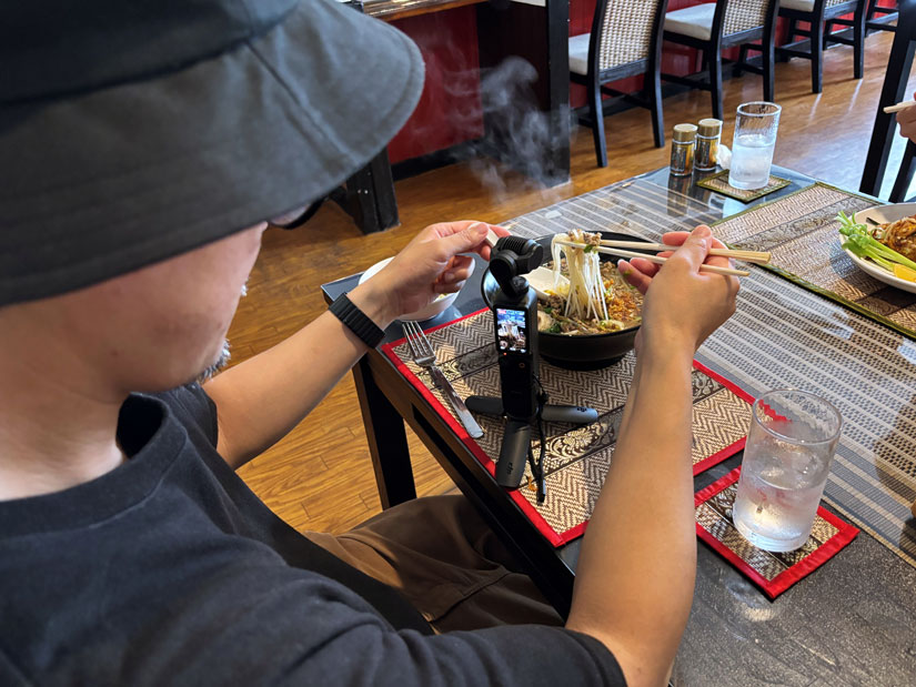 ジンバルを駆使して、麺上げの様子もしっかり撮影しています。
