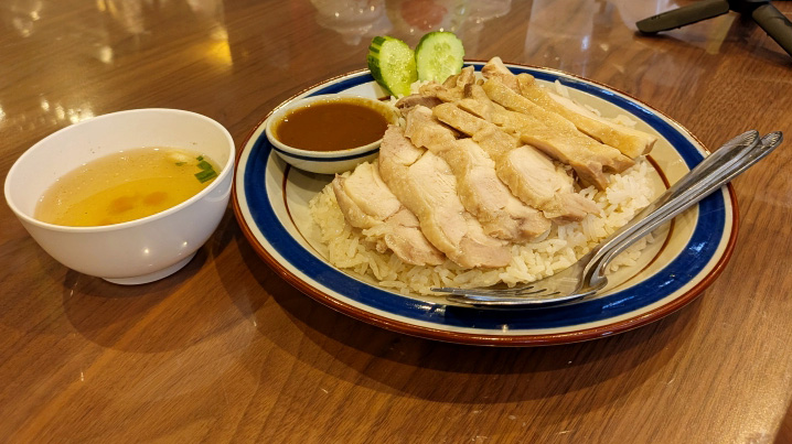 「おすすめはなんですか?」とゆうさん。店員さんがすすめてくれた「カオマンガイ」のほか、「トムヤムボラン」(ともに1,000円/ランチ価格)をオーダー。