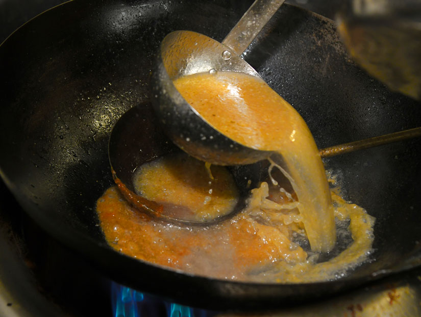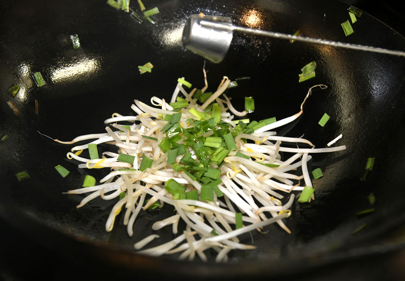 さらに、シャキシャキのモヤシとニラという味噌と相性の良い野菜は、炒める際に鶏の旨みが抽出されている油でいためるのもポイントです。