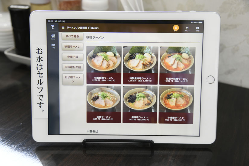 注文は各テーブルやカウンターにあるタッチパネルで。各メニューの説明もあり、注文しやすいです。味玉やチャーシュー増しなどのトッピング、お子さまメニューなどもあります。