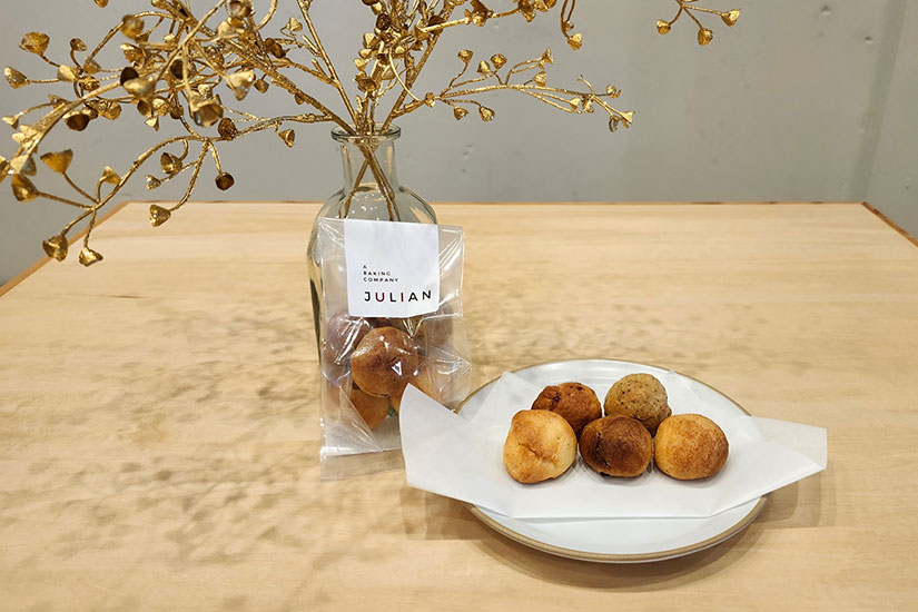 さらに、須坂駅近くのカフェ&スイーツ「JULIAN」では、会計の際に「蔵のまち須坂 満喫フリーパス」を提示すると「ひとくちスコーン」をプレゼント!店内で焼き上げるスコーンは、素材の風味が感じられる一品です。濃厚なクリームチーズを使用した看板商品「クリームチーズサンド」もぜひご賞味ください。