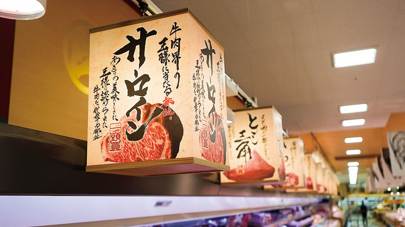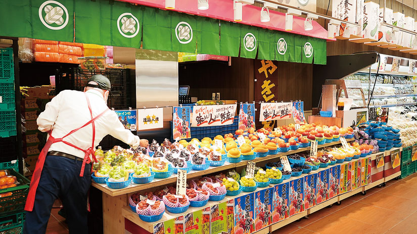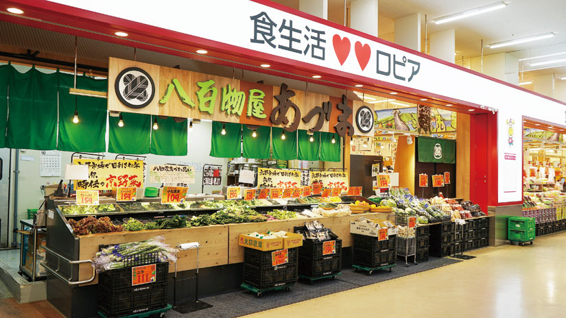 写真はいずれも他店のもの。青果部門「八百物屋あづま」では、旬の野菜や果物でお出迎え。大きさ