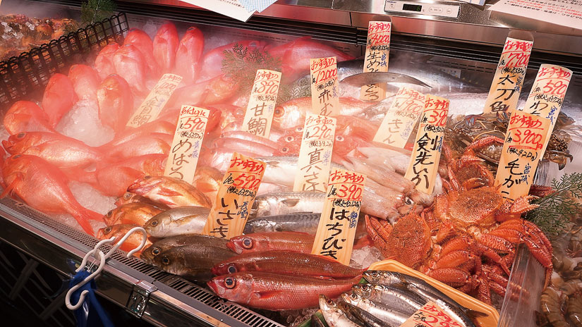丸魚の品ぞろえや対面販売のほか、寿司販売にも注目!人気の「寿司のばら売り」では新鮮なデカネタ寿司が100円台から楽しめます♪