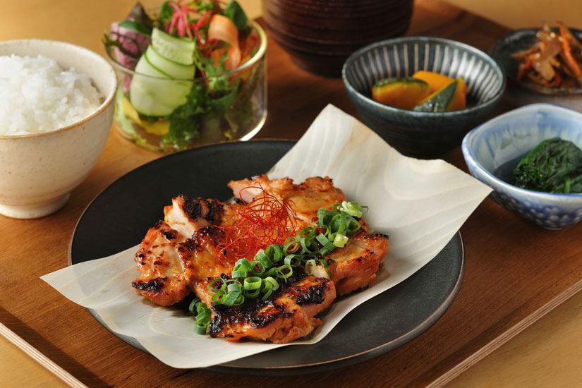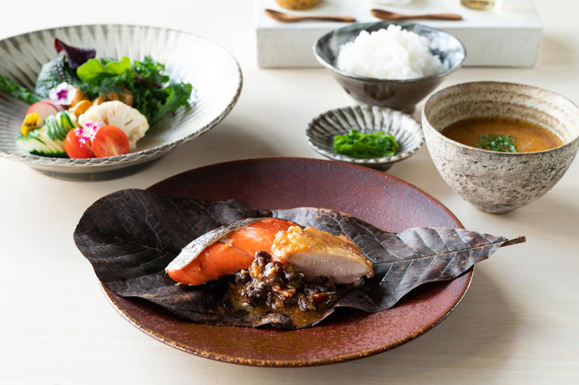 「雪峰食堂(せっぽうしょくどう)」では、白馬近郊で育った季節の食材を活用した一汁三菜の和定食や丼物、ラーメンなどが楽しめます。特に和食メニューには、北アルプスから流れる雪解け水と豊かな土壌で育てられた信州・白馬のお米や地元食材を中心に使用。地元生産者から直接仕入れた食材を丁寧に調理することで、心が安らぐような滋味深い味わいを実現しています。