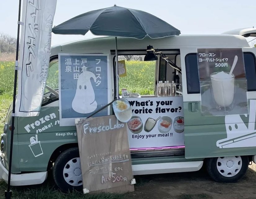 ⼋ヶ岳ヨーグルトと⽜乳を使⽤したすっきりとした⽢さのフローズンヨーグルトシェイクを販売。農家さんから直接仕⼊れたくだものソースのトッピングもおすすめです。