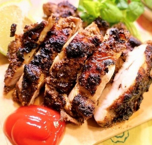 ⾃家製スパイスと野菜ペーストを使⽤し、炭⽕で焼き上げた本格ジャークチキン。⾟⾟フェス限定、ジャマイカの唐⾟⼦「スコッチボネット」の激⾟ジャークチキンも!