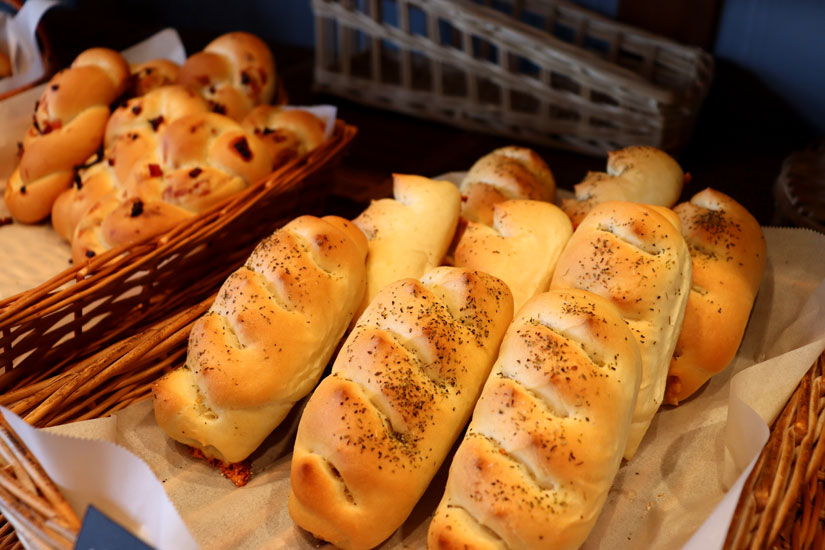 総菜パンは写真右手前「ソーセージロール」(300円)やベーコン入りの「ホウスカ」(150円)など。