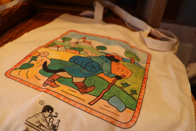 気になる店名の「Mikeš」ですが、実はチェコの絵本作家ヨゼフ・ラダの絵本に登場する黒猫「ミケシュ」から名付けられたもの。手作りした看板の中央に描かれた黒猫「ミケシュ」の絵が目印です。
