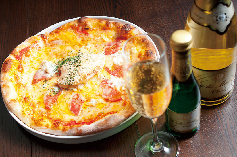 カニの風味とほど良い酸味のフレッシュトマトとの相性は抜群。チーズは4種類をミックスしており、芳醇な香りが広がります。