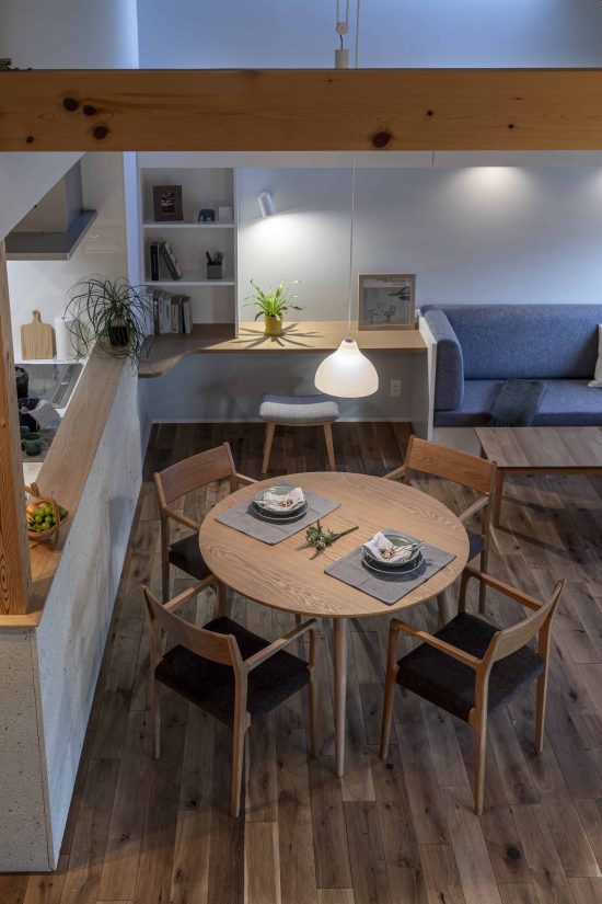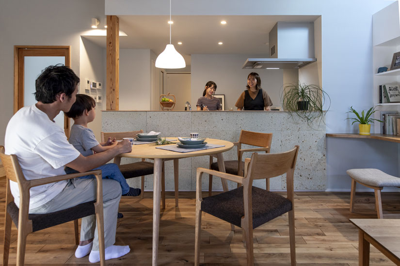 家族との自然なコミュニケーションを生むため、各エリアからの視線がLDKの中心に集まるように工夫されているのも特徴。キッチンに立っている家族とダイニングにいる家族の会話が自然とはずみます。