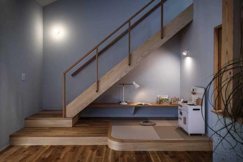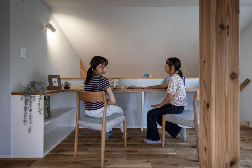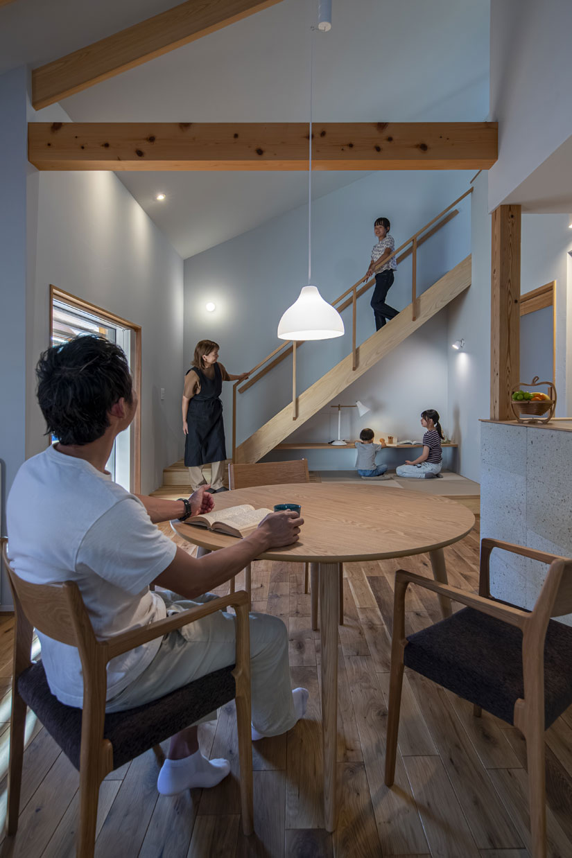 テーマの「帰りたくなる家」を実現するため、家族がくつろげる心地よい居場所があちこちに設けられているのも見どころ。