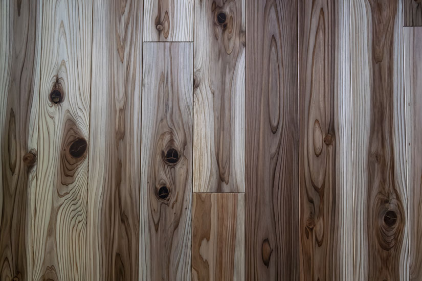 寝室のみ、床は屋久島地杉の無垢に。香り成分が強いためリラックス効果や防ダニ効果が高く、寝室にぴったりの素材なんだとか。また空間ぴったりにしつらえられる造作が多いのも、同社の強みのひとつ。住宅から神社仏閣まで、あらゆる建物を手掛けてきた経験豊富な自社スタッフの職人が、住まい手の希望を聞きながら細部まで丁寧に仕上げていくのだそうです。