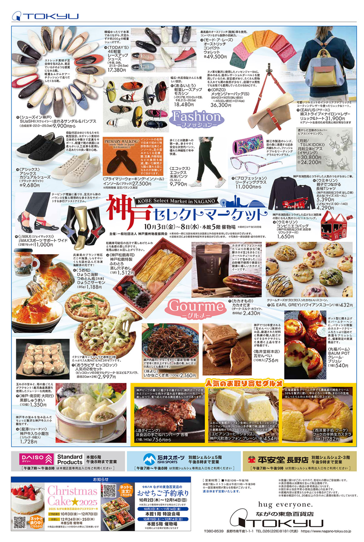 長野駅前の「ながの東急百貨店」で、雑貨やファッション、人気グルメが集結するイベント『神戸セレクトマーケット』が、2025年10月3日(金)~10月8日(水)に開催。