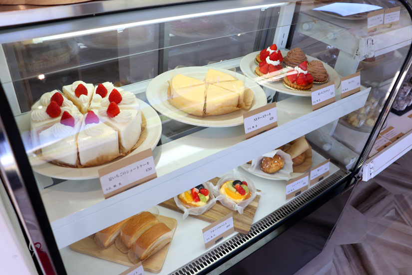 定番は、甘さ控えめの生クリームがポイントの「ロールケーキ」(330円)や「モンブラン」、「NYチーズケーキ」(420円)、シュークリームなど。