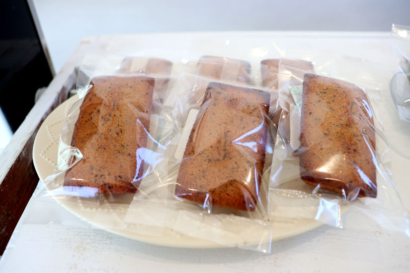 店内奥の棚には、フィナンシェやマドレーヌ、パウンドケーキ、クッキーなど約14種類の焼菓子。焼菓子には、赤しそやマスタード、ワサビといった意外な素材も!食材の味を引き立てるために「生地のベースはありますが、合わせる食材ごとに配合を変えるなど、それぞれの風味を生かせるように工夫しています」とこだわりも。