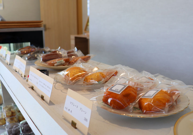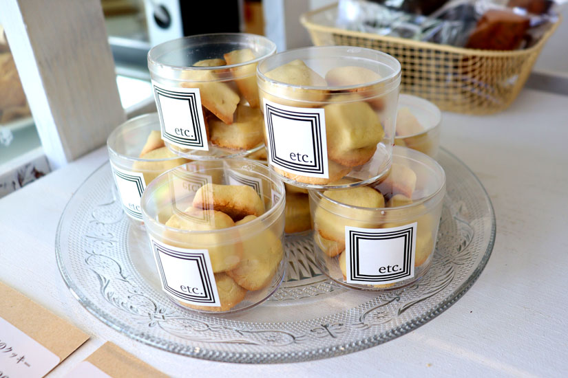 店名の「エトセトラ」には、「定番は押さえつつ、風変りな目を引くようなものがあったらいいな」という想いが込められて、その言葉通り、店内のショーケースや棚の上にはショートケーキなどの定番商品はもちろん、マスタードや赤しそなど、ちょっと意外な食材を使ったオリジナリティに富んだ焼き菓子も並んでいます。