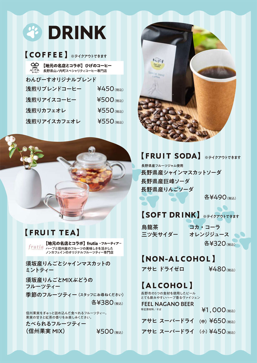 10/3(金)オープン!愛犬と一緒に食事を楽しめる「ドッグカフェ わんぴーす」信州の味覚が楽しめるフード&ドリンクとヒューマングレードなドッグフードが魅力@長野県須坂市