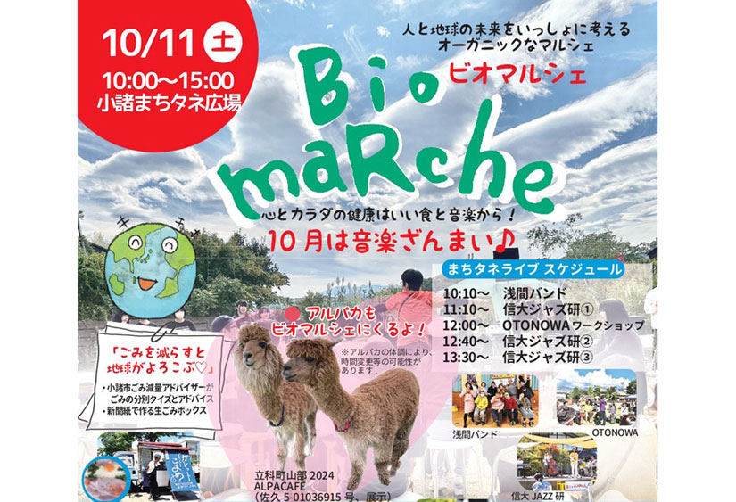 長野県小諸市の小諸駅前で、人と地球にやさしいマーケットイベント『Bioマルシェ(ビオマルシェ)』が、2025年10月11日(土)に開催。