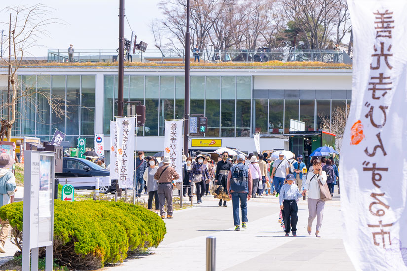 隣接する「善光寺東公園」と「長野市立城山公園」に多くのお店が並びます。
