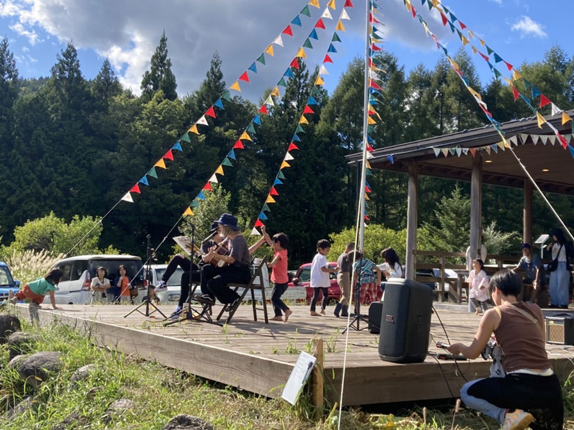 ステージでは、地域の人やボランティアによる楽器演奏や弾き語り、トークショーなどが行われます。