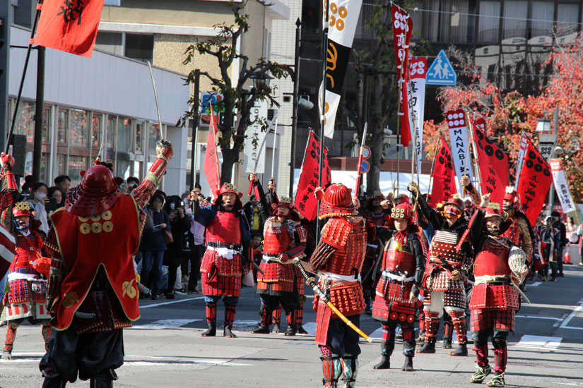 真田三代(幸隆・昌幸・幸村)を筆頭にその奥方等、総勢約200人による勇壮な真田軍武者行列が街中を行進。