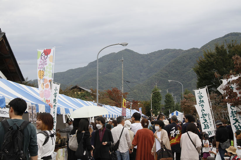 毎年恒例の栗祭りでは、13時から奉納栗あん汁粉のふるまいや、限定栗菓子セットの販売を実施。小布施の名産である栗を味わえます。