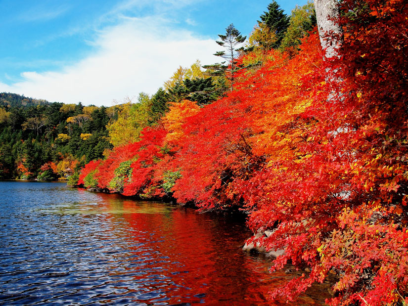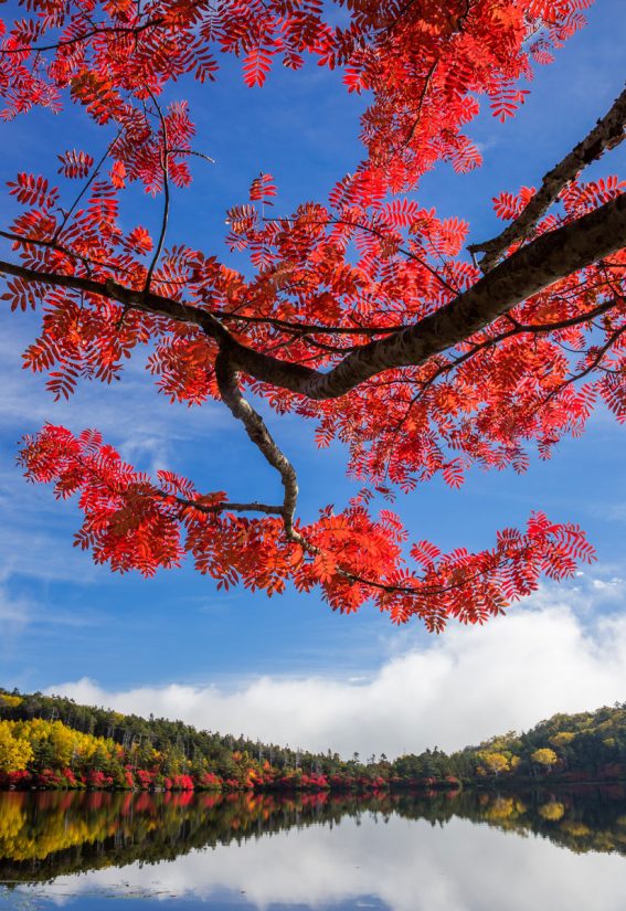 標高2,100m以上の湖としては、日本最大級の天然湖。長野県南佐久郡小海町にある「白駒の池」は、北八ヶ岳の広大な原生林の中広がる、日本最高所にある神秘的な湖。周辺には苔が生い茂る森も広がり、「日本の貴重なコケの森」にも認定されています。紅葉の季節には、湖面に映る木々の鮮やかな景色が見事です。