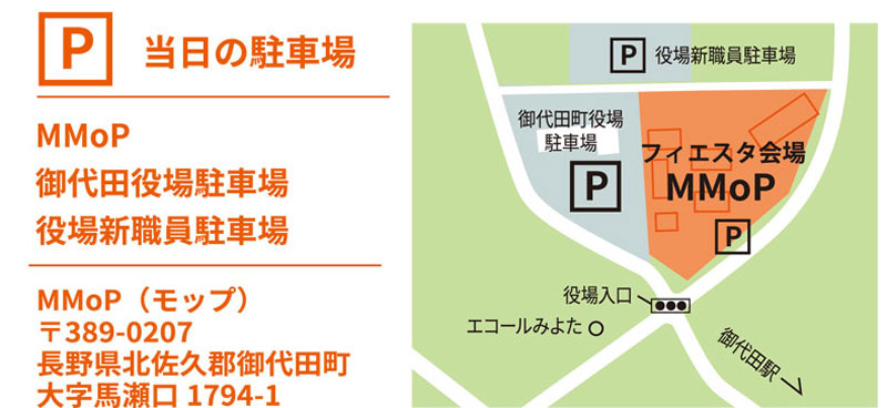 MMoP駐車場、御代田町役場駐車場、役場新職員駐車場