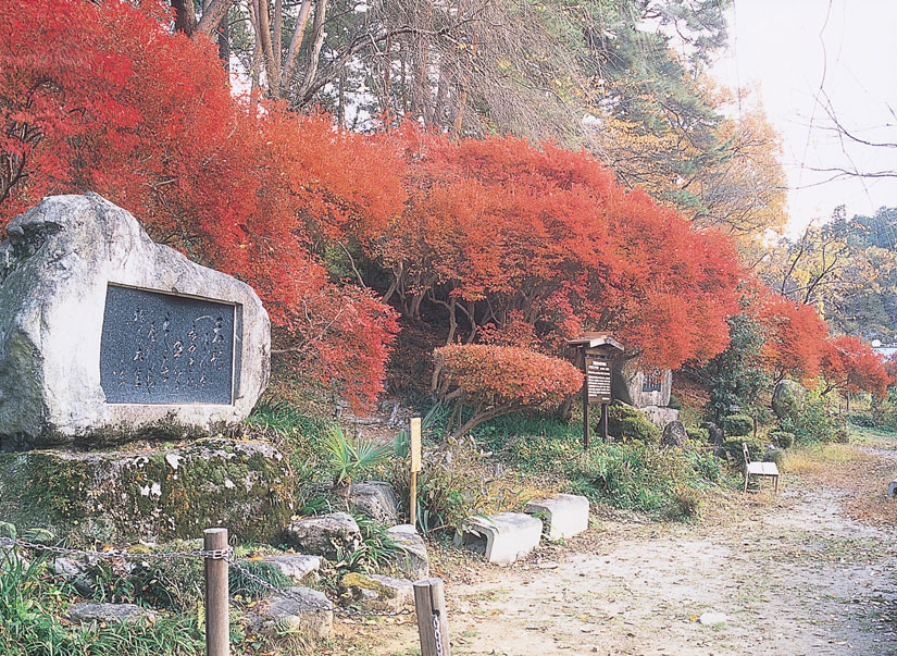 長野県飯田市にある「天龍峡(てんりゅうきょう)」は、天竜川の浸食によってつくられた南北約2kmにわたる壮大な峡谷です。奇岩や断崖が連なる雄大な景観に、モミジ、クヌギ、カエデ、サクラなどの木々が鮮やかに色づき、峡谷全体が紅葉に包まれます。