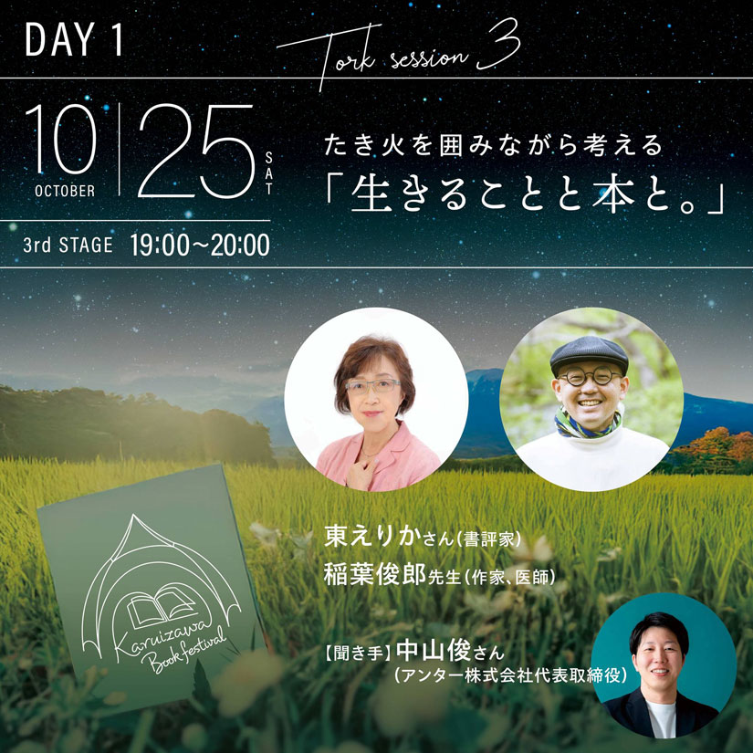 医療ノンフィクションを上梓したばかりである書評家の東えりかさんと、「命」「生きること」を言葉に綴ってきた作家であり医師の稲葉俊郎先生が登場。たき火を囲みながら「生きることと本」について語り合います。