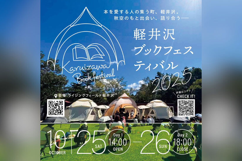 2025年10月25日(土)と10月26日(日)に、長野県北佐久郡軽井沢町の「ライジングフィールド軽井沢」で『軽井沢ブックフェスティバル2025』が開催。軽井沢の広大なキャンプ場を舞台に、本と人、人と人が出会い、語り合う新しいタイプのイベント。