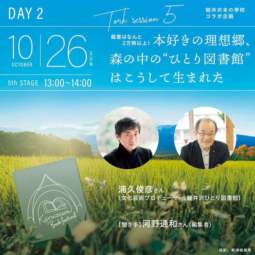 今読むべき「名著」を選び、新たな視点で、本の読み方をナビゲートする「軽井沢本の學校」とのコラボ企画。文化芸術プロデューサーであり、軽井沢に「ひとり図書館」を設けた浦久俊彦さんがゲスト。