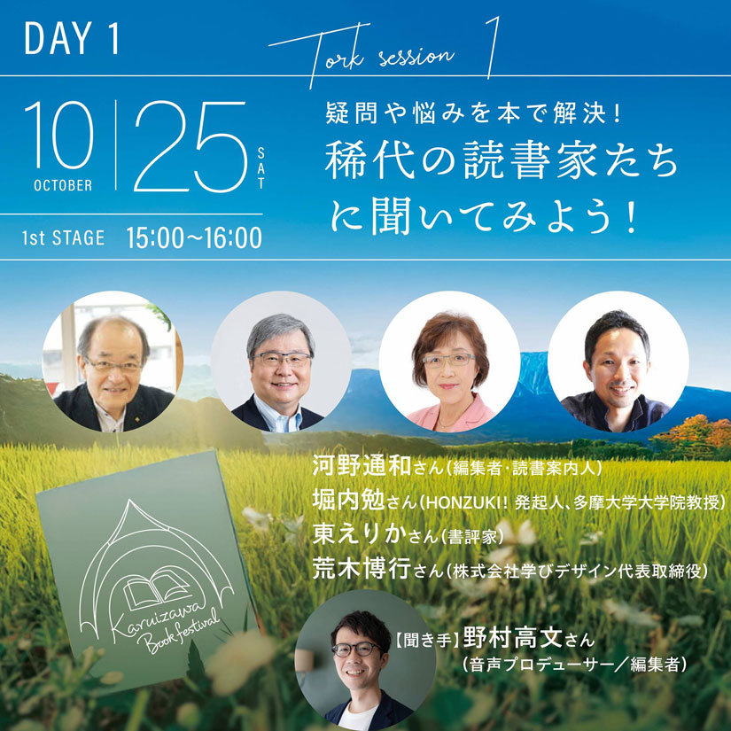 さまざまな本をたくさん読んできた日本を代表する稀代の「本読み」たちが登場。「中年の危機、どう乗り越える?」「子どもと一緒に本を楽しむなら?」などなど、参加者たちのさまざまな疑問や悩みに対して、オススメの本を教えてもらえます。